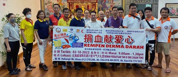 活动也获槟州威北捐血人协会和马来西亚红新月会威北专区协办,早上9时至下午1时30分在北海威省陈氏颍川堂冷气大礼堂举行,目标筹600包血,受惠医院包括居林医院、大山脚医院、甲抛峇底医院和槟安医院。