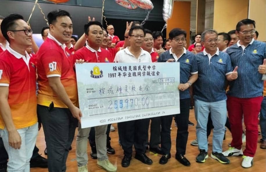 (槟城19日讯)钟灵中学1997年毕业同学联谊会日前在母校举办离校银禧庆祝晚宴,并为母校筹获27万5970令吉。