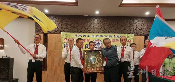 大会主席陈锦赐也移交文武圣柳圣物给明年度(2023年)承办单位槟城振立阁,由阁长洪贵祥接领。