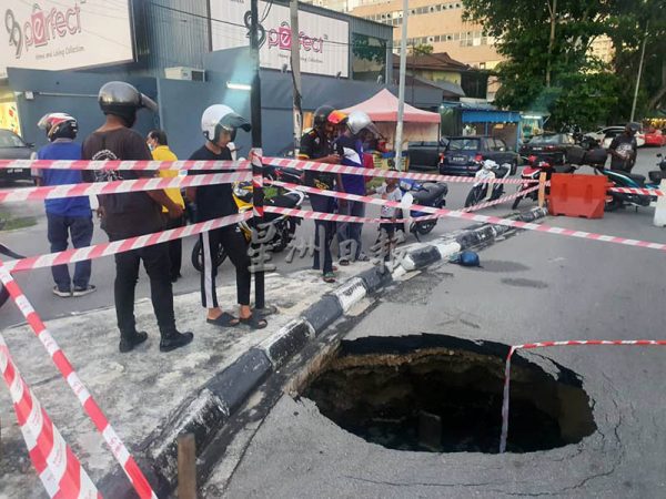 (槟城27日讯)利华路路面昨午突然下陷出现大洞口,有关当局今早已进行修补工程。双溪槟榔区州议员林秀琴说,该处路面下陷的起因,是英达丽水(IWK)地下水管爆裂。