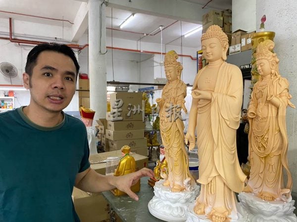 沈丽艳说,丈夫开始制作佛像的1980年代初期,观音、伯公和关公像最畅销,很少人会在家里供奉佛陀像,所以她只能到佛教道场拜托师父帮忙推广,后来才慢慢打开市场。