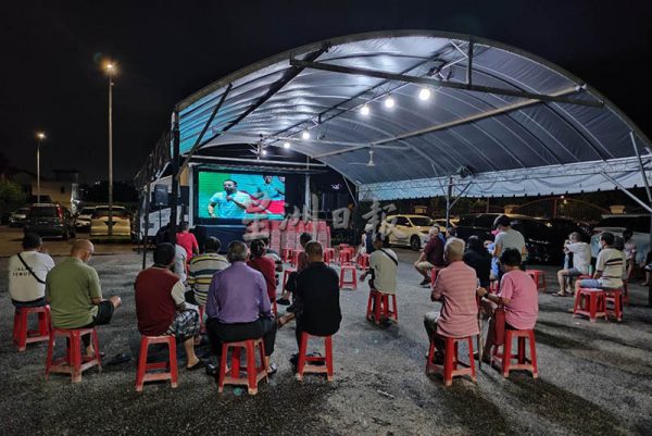 这场晚宴筵开100席,主办单位贴心地在会场外安放大屏幕,让没有购票进场的民众,也有机会聆听希盟领袖的演说,一些民众则选择站在会场对面,冒着细雨驻足远观。