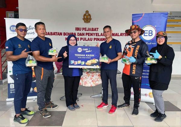 (槟城3日讯)感恩为社会的付出和牺牲,更加好集团旗下的EB冷冻食品,日前到学校、警察局及消拯局派送恩物,表达谢意。
