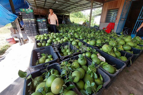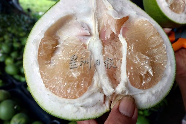 其柚子多输往新加坡,本地也有,今年批发价平稳,在北马的市场里,来自两成园的柚子是其中主要货源。