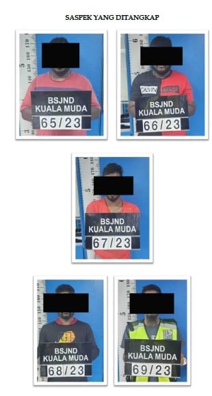 他说,警员先在牛舍内逮捕3名嫌犯,即2名本地男子与一名外劳,事隔1小时后再有2名本地男子各骑摩托车到牛舍,也将他们逮捕带返警局助查。5名嫌犯的年龄介于22至36岁,皆已被延扣7天助查。