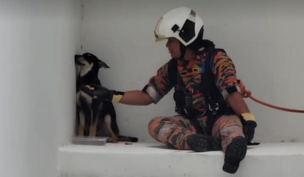 消防员援救狗狗的一幕发生在槟岛公巴的Dua Resindensi公寓10楼,时间是昨日下午1时许。