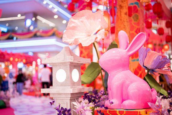 双威嘉年华广场如今已换上弥漫着浓厚年味的新春背景与装饰,并以“幸福绽放”为主题庆祝兔年吉祥,粉红樱花绽放,迎向幸福美好的癸卯兔年。