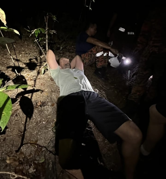 峇眼惹瑪消拯局接获投报后,带队上山搜寻男子,最终于昨晚9时20分,在山上找到他。