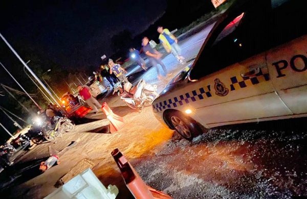 (双溪大年25日讯)约30岁的缅甸外劳无驾照骑摩托车外出,失控冲向路中分隔带后,整个人被弹飞至反向车道,且被迎面而来的轿车撞上再卷入车底,当场死亡。