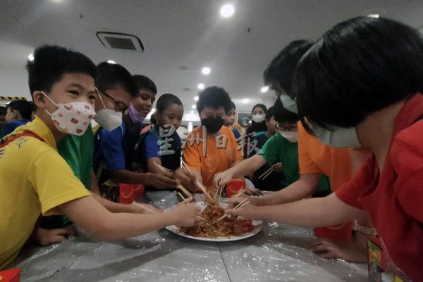 槟城光大穹顶科学馆今日举办STEM(科学、科技、工程及数学)活动,同时庆祝农历新年,参与的友族学生也兴奋地一起捞生,气氛非常融洽。
