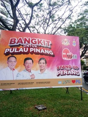 (槟城7日讯)行动党浮罗池滑州议员李俊杰服务队在州选区内几个地点,安装了“为槟城挺身而出”(Stand up for penang)的看板,借此呼吁槟州人民好好保护槟城,不要让有害政治在来届州选入侵槟州。