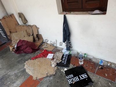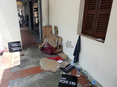 (槟城10日讯)一名流浪汉长期住在闹市之中的狄更路商店前的走廊,在走廊上制造垃圾,空气之中也出现难闻尿味,市民怒斥:“槟岛市政厅在睡觉!”