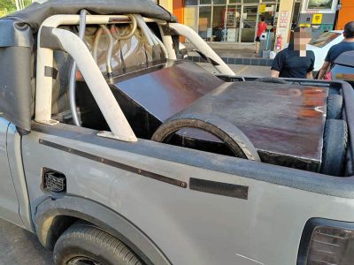 (双溪大年17日讯)青年驾驶改装过的皮卡车到油站买柴油,被吉州贸消局执法员截查。