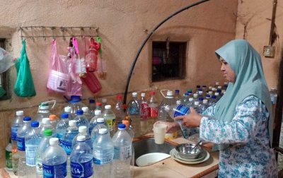 (铅23日讯)14年来频繁断水,政府又不闻不问,铅县Titi Teras约有1500村民生活受影响,家里经济条件稍好者,宁可花钱购买矿泉水回家洗衣做饭洗碗,没钱的就在迫于无奈之下,抽取沟渠里的污水再循环使用。