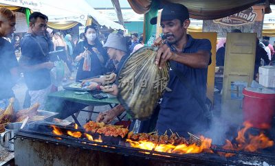 沙爹、鲜鱼(pasembur)、熟菜饭、阿拉伯饭、烤鸡、长形汉堡(roti John)、炸虾饼、椰子奶昔、炸糕等多达80个美食档口令人目不暇给,扑鼻而来的食物香气也令人垂涎。
