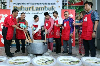 昨日是斋戒月次日,槟州首席部长曹观友、槟州贸易与工业、企业发展委员会主席拿督阿都哈林、光大区州议员郑来兴、新光大共管机构主席拿督方万春、槟城国际清真机构首席执行员法兹伊尔万等人前往该市集巡视档口,并派发围裙给小贩。