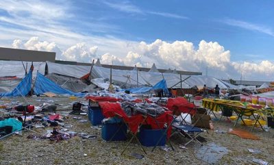 消息指出,会场内的摊贩帐篷不是被吹得东倒西歪,便是承受不了大雨强风的袭击而坍塌。