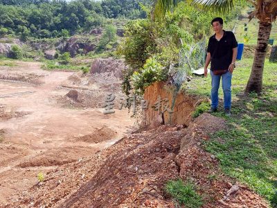 (双溪大年29日讯)一名地主多年费尽心思,准备将占地9英亩的榴梿园打造成休闲农场,岂料隔壁地主却将泥土变卖,泥土被挖后园地出现严重下陷,斜坡的危险程度被形容为“峇冬加里2.0”。