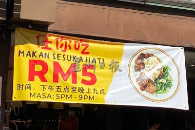 “最初在迫于无奈之下,我们每晚只能倒掉剩菜,后来经过几番思考,想到与其丢掉食物造成浪费,倒不如以特价回馈顾客,于是便开始在每天傍晚5时至晚上9时推出5令吉任你吃活动。”