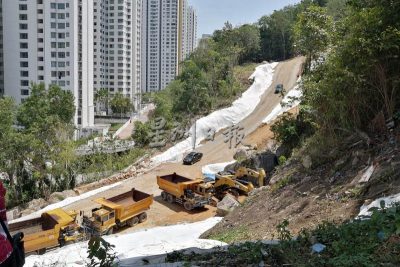 郑雨周今日率领媒体到第二配套工程施工地点附近的高处,以更清楚看到工程所开发的路段,其中可见到山坡中段已开发成一条面积相当宽广的泥沙路,期间亦见有卡车或车辆进出。