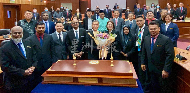 在会议结束后,槟岛市议员陈汇萍代表所有槟岛市议员及市政厅官员献花送别尤端祥,感谢他多年的付出与贡献,市长也与众人逐一握手道别言谢。