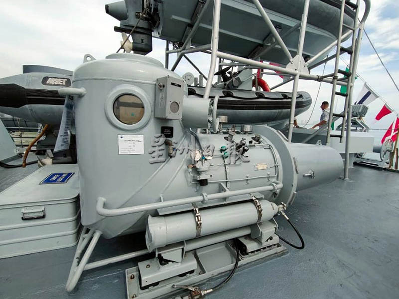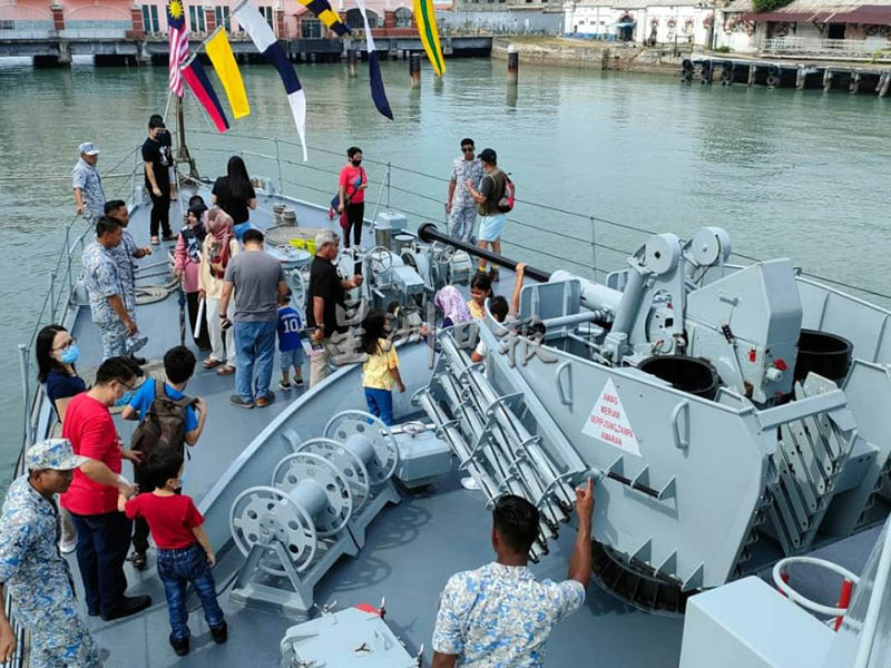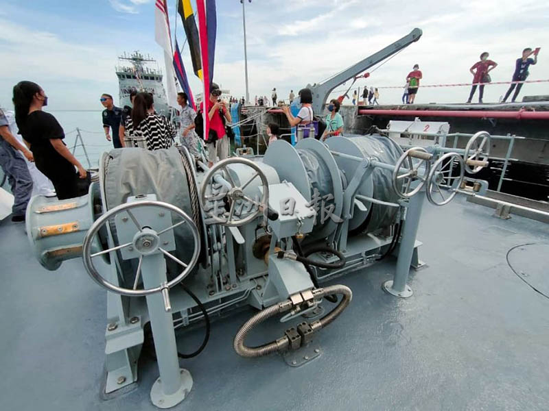 (槟城27日讯)这是扫雷用具、这是潜水救生舱,上万民众今日趁着大马皇家海军海军开放日,参观扫雷舰及训练舰,收获满满。