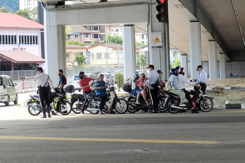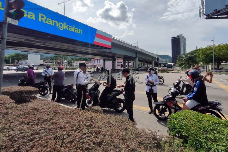槟州东北警区主任索菲安今日下午率队到亚依淡路和州清真寺路交界的红绿灯前,展开执法行动。
