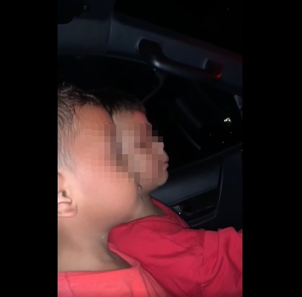 6岁哥哥载著3岁弟出外兜风后撞车。(图取自脸书)