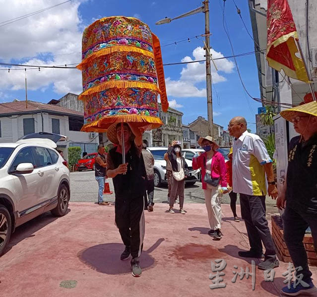 组员撑凉伞走在妈祖前方,为神明引路,抵达各会馆前会旋转凉伞,护住神尊,阻挡晦气。出巡队伍约8人全程步行约1.4公里,先后到各会馆出巡。