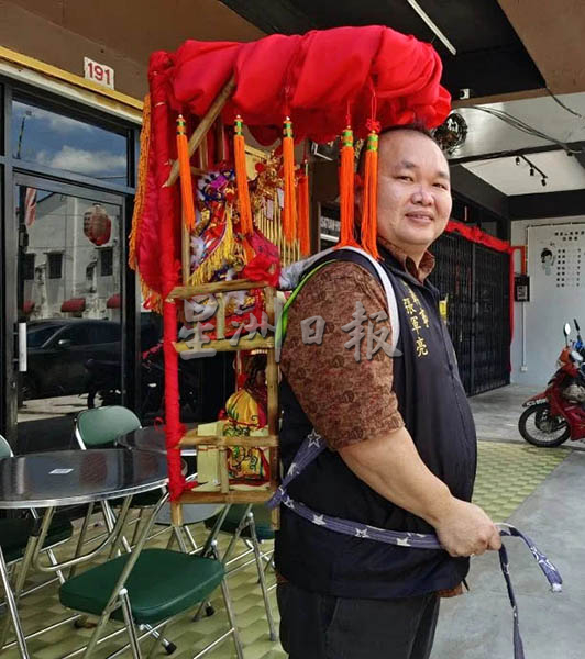 两尊妈祖神尊是由吉打天后宫总干事张军亮以背篓背着进入会馆,再由吉打天后宫主任委员蔡政駥读妈祖疏文后,进行拜祭仪式。