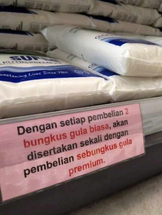吉打州内贸局局长阿芬迪今日发文告说,当局是接到投报,指乌丹甘榜一家杂货店的业者附加条件,规定消费者凡要购买2包粗糖(每包1公斤;售价2令吉85仙),则必须购买一包透明精致白糖(每包一公斤;售价4令吉60仙)。