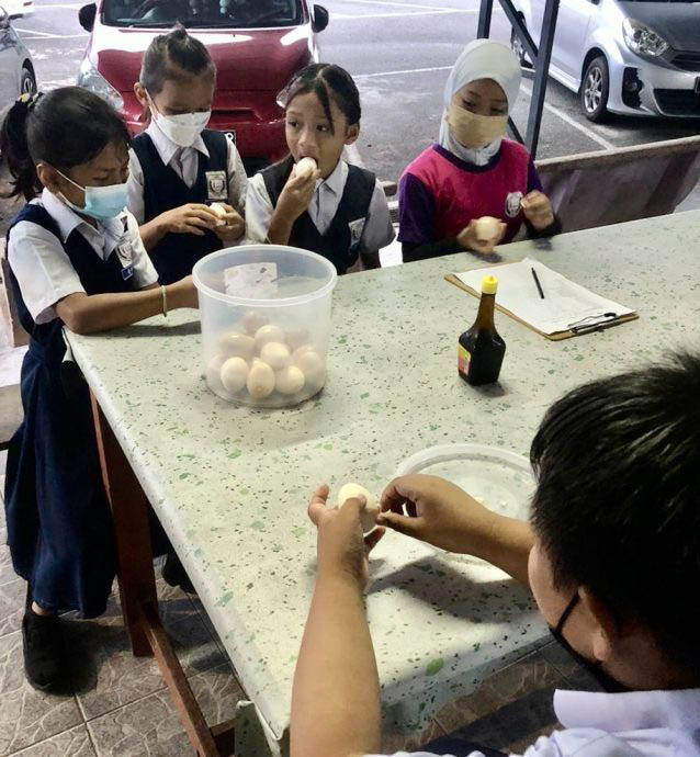 (加央21日讯)虽然只是简简单单的一个水煮蛋,但是,对马打亚逸公益华小30名来自B40群体家庭的学生来说,却是每天上学时最温饱的早餐。