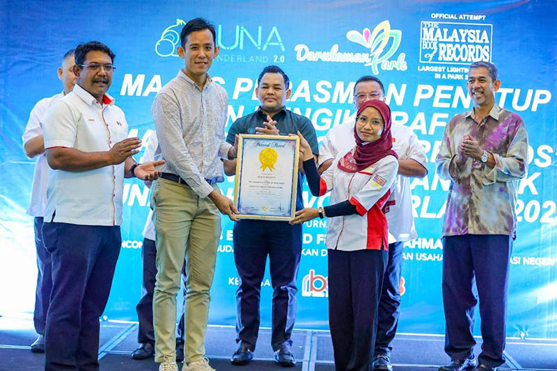 “Darulaman Park Luna Light Wonderland”灯会日前由州行政议员莫哈末费道斯主持熄灯闭幕仪式,同时也见证灯会跻入大马纪录大全,出席者也包括该公司执行长拉惹莎林、董事莫哈末索比里。