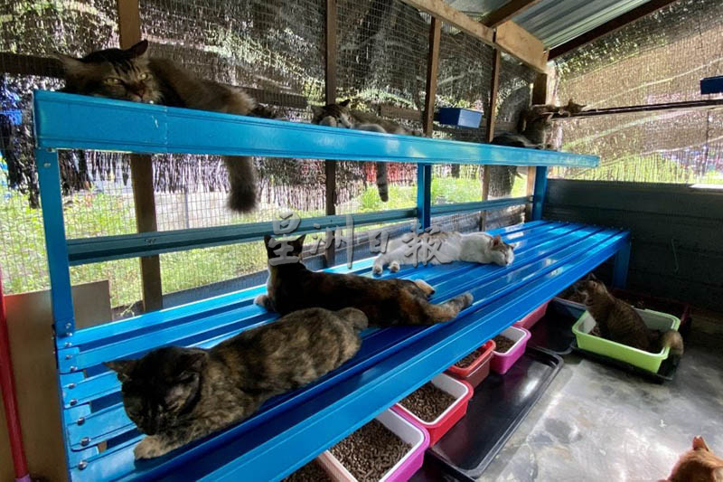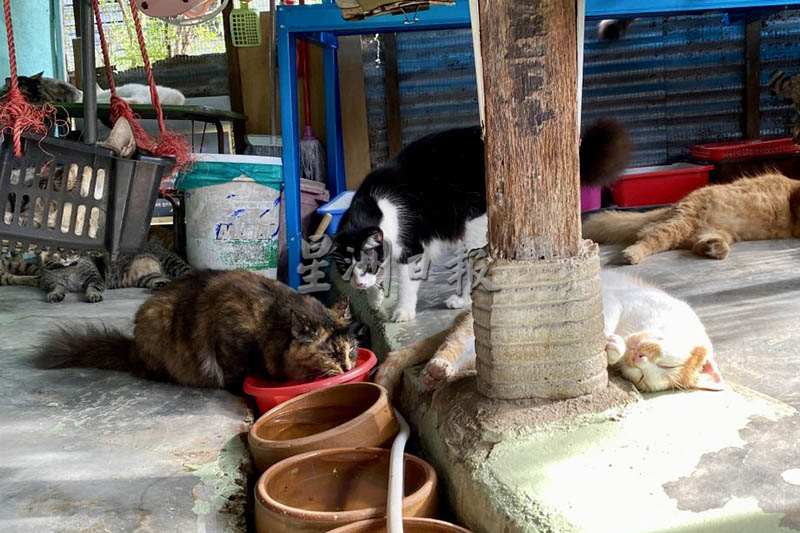 莉亚说,一开始,她从街上带了20只猫咪回家照顾,直至2020年,她在住家旁的小角落,打造一个温暖的猫屋,收养的猫咪更增加至61只。