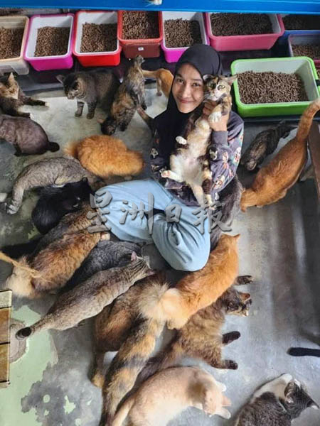 这名爱猫人士拉姬也莉亚(Raziellia Nor Saafri或称莉亚,32岁)来自峇都茅一座渔村。小时候的她,经常喂养路边的流浪猫咪,挨饿、生病、车祸受伤、被虐待等不幸遭遇的猫咪,都会让她感到揪心不已。