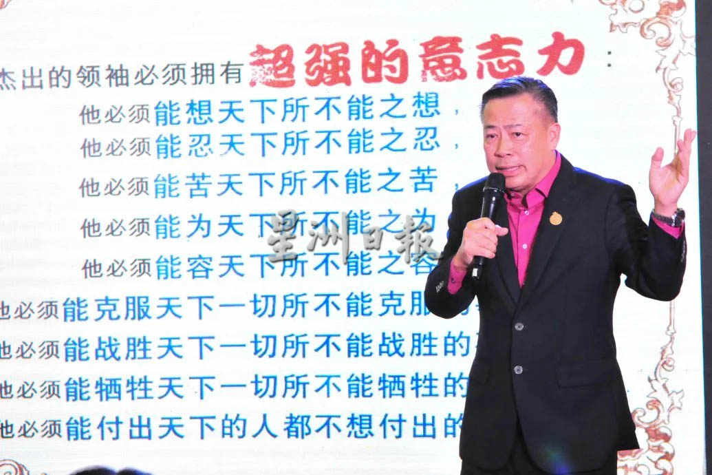他说,做人千万不要为了一口气而得罪所有人,如果一个人能够活上100年,意即他只有3万6500个日子,所以,华人要改变思维,尤其很多华人企业开会时喜欢提出员工的错处,而不是讨论员工所做的正确事情。