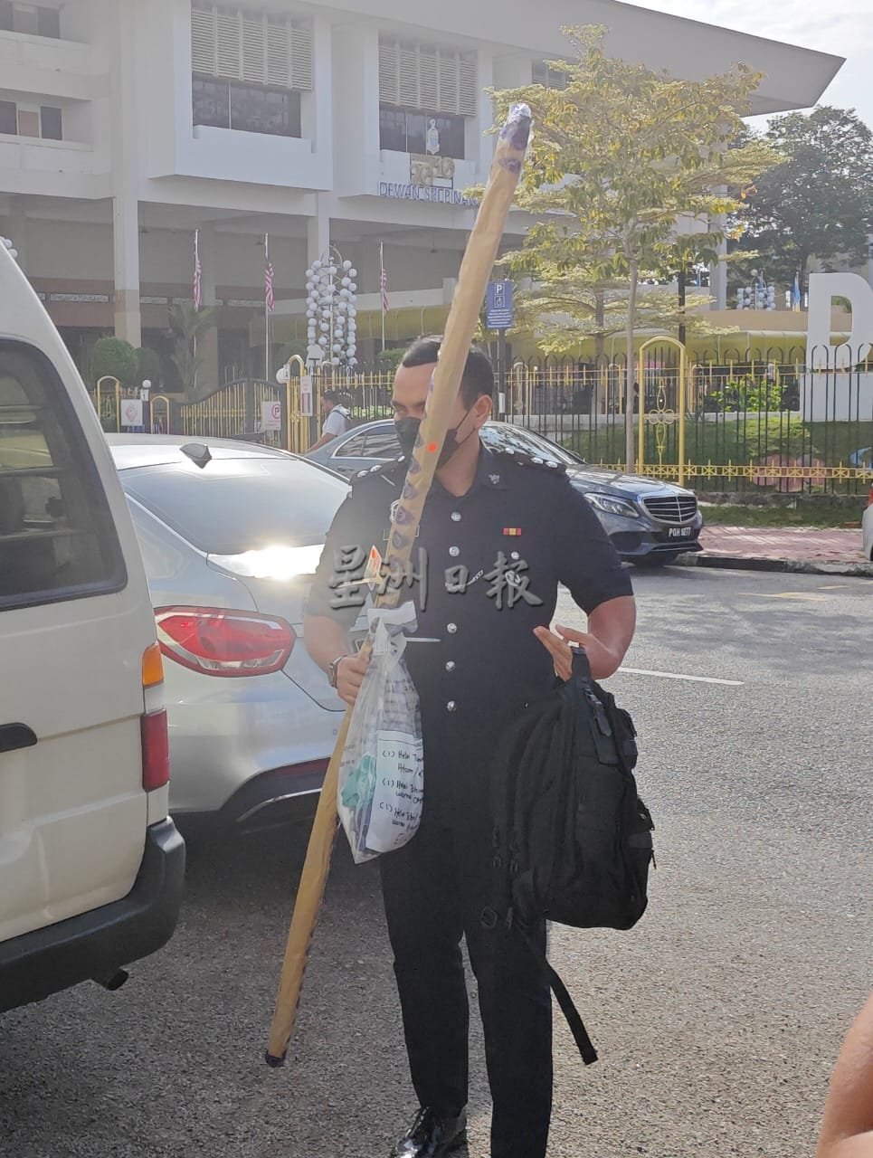 查案官也携带被告用来攻击野狗的“打狗棍”到法庭,以作为呈堂证据。