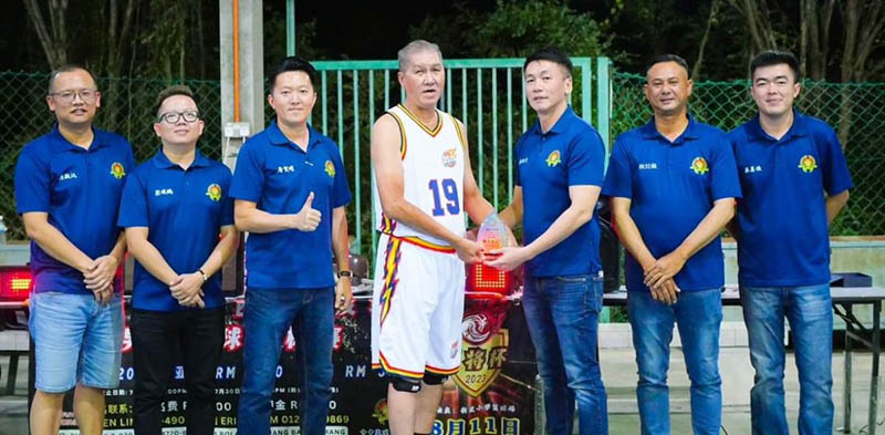仪式上,蔡都杰颁发纪念品给来自大山脚JS135队的邱福平(61岁),由篮球公会副会长陈致达、竞赛主任林彣燊、副财政詹贤耀、副宣传主任梁顺鹏和副技术主任蔡勇俊陪同。