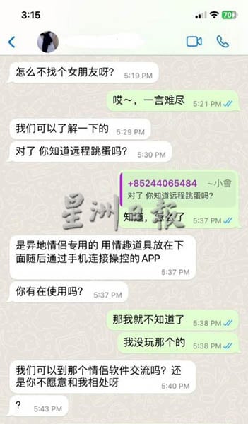 对方与男子裸聊后,在电话上发出一个应用程式的链接,自称可以用远程跳蛋的情趣道具让男子远程操控。