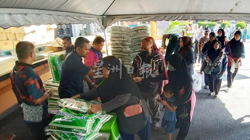 现场除了销售10公斤包装本地白米(26令吉)以外,主办单位也销售170托鸡蛋(一托30粒、GRED B、12令吉90仙),以及爱心销售配套(12令吉),即一包1公斤食油、蒜头(一公斤)、小洋葱,以及马铃薯。
