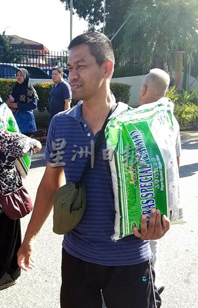 在验血中心上班的苏海米(46岁)说,他今早准备到诊疗上班时,途中接到妻子告知有促销白米,因此特地到这里来抢购,而他也有在卖椰浆饭等赚取额外收入,可能明天还会再来。