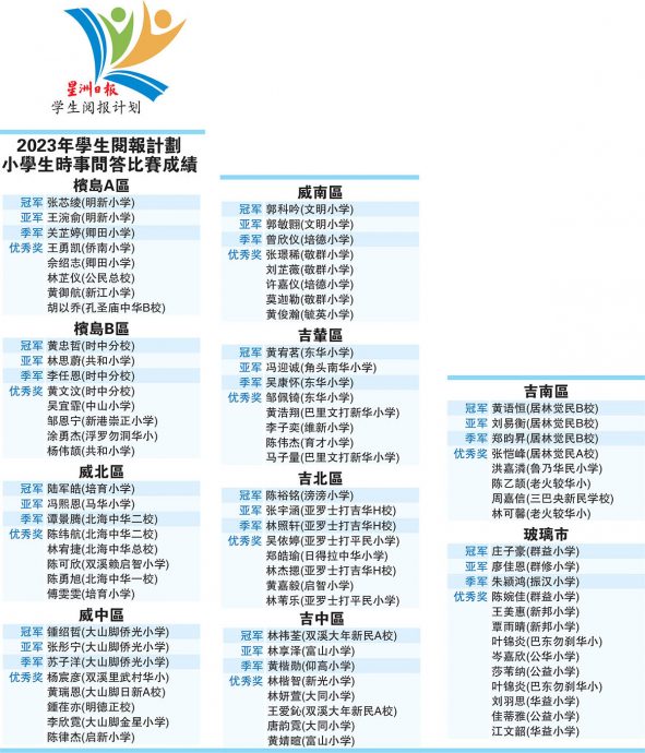 星洲日报小学生时事问答比赛 槟吉玻吉辇区成绩揭晓