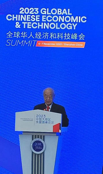 他日前出席2023年全球华人经济与科技高峰会(GCET)之“中国大湾区-东盟圆桌会”并致欢迎词时说,目前正处于科技创新和全球经济合作的新时代,在机遇与挑战交织之际,全球华人作为联结东西、沟通南北的纽带,共同承担推动世界繁荣发展的责任。
