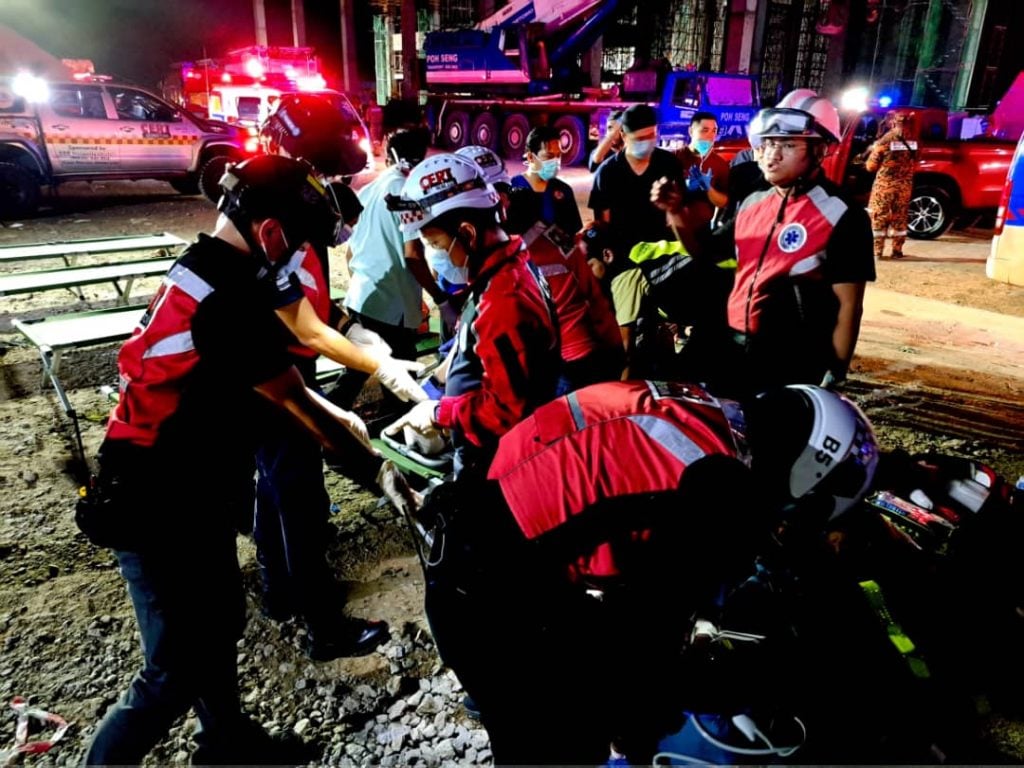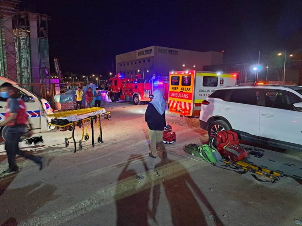 这事件今晚9时许在峇都茅DHL建筑工地发生,消拯员已赶往抢救中,救护车也到场待命。