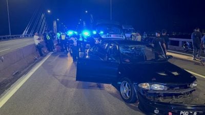 视频 | 从吉打至槟岛 9警车追一匪车 司机跳海被救2人落网