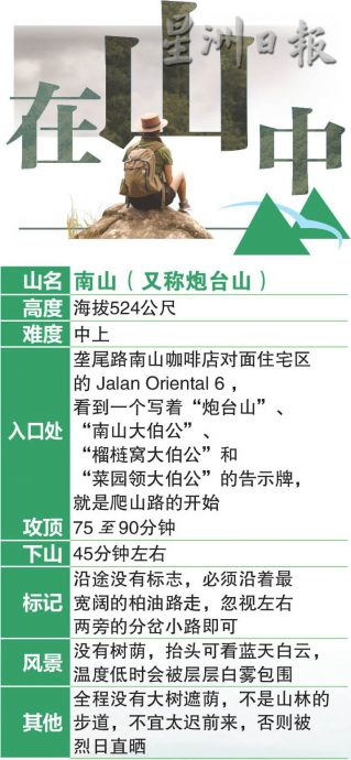 看着宏伟的两座槟威大桥、乔治市的城市景色、槟岛后花园即浮罗山背的绿意,还有远处朦胧的威省,那是怎样的感觉?你要自己来到南山,挺过这3段路的考验,才能体会。