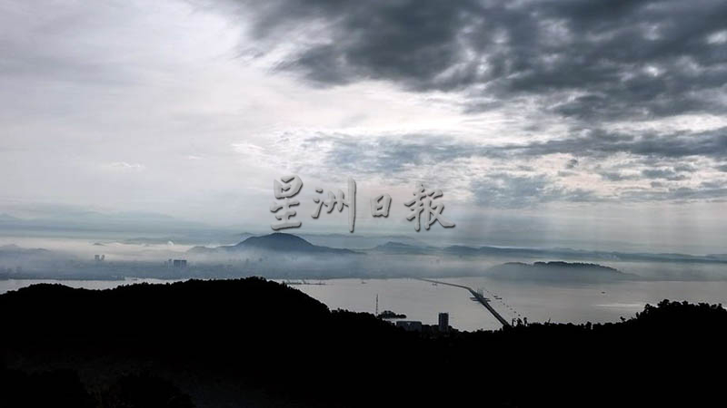 站在顶峰看到槟城大桥,以及白雾笼罩的威省。