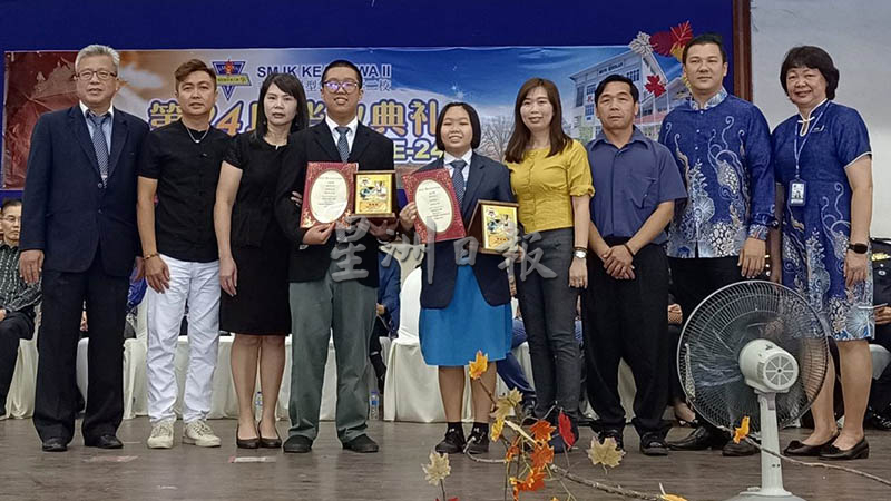 今年度的男女模范生分别由沈锐哲和朱芯婕夺得,他们在父母的陪同下领奖。该校今年有128名毕业生。