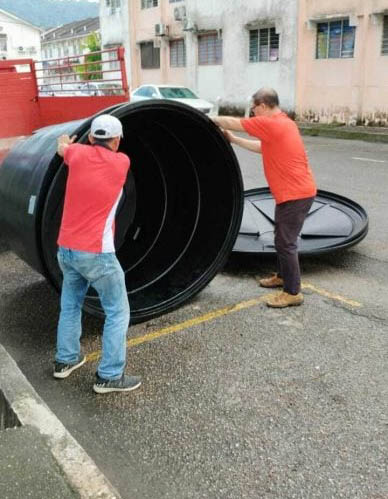 槟州行政议员暨爪夷州议员方美铼和武吉淡汶州议员吴俊益的团队从前日开始,就将陆续运抵的大水箱安置在各住宅区地段。