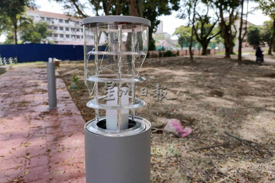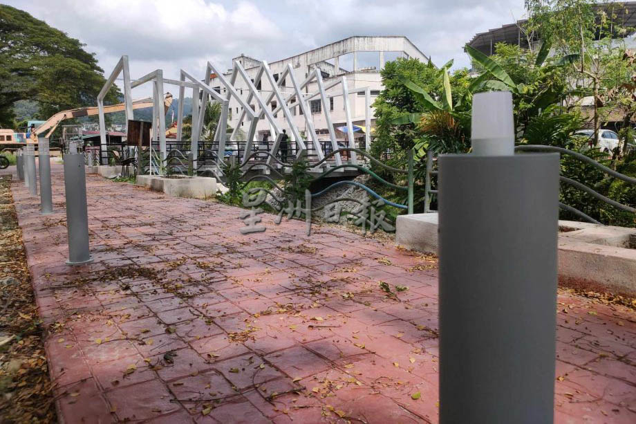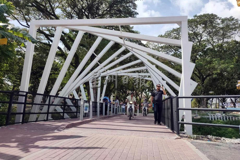 (槟城5日讯)衔接新港巴刹及直线公园的小桥重建及周边提升工程已完成99%,而这座被命名为“新港友爱小桥”(Titi Pengikat Kasih Sungai Ara)的通道已开放使用,美化后的环境也获得居民赞赏;无奈的是,启用不到1个月设施就遭到恶意破坏,桥上部分灯杆的灯罩已被打破。